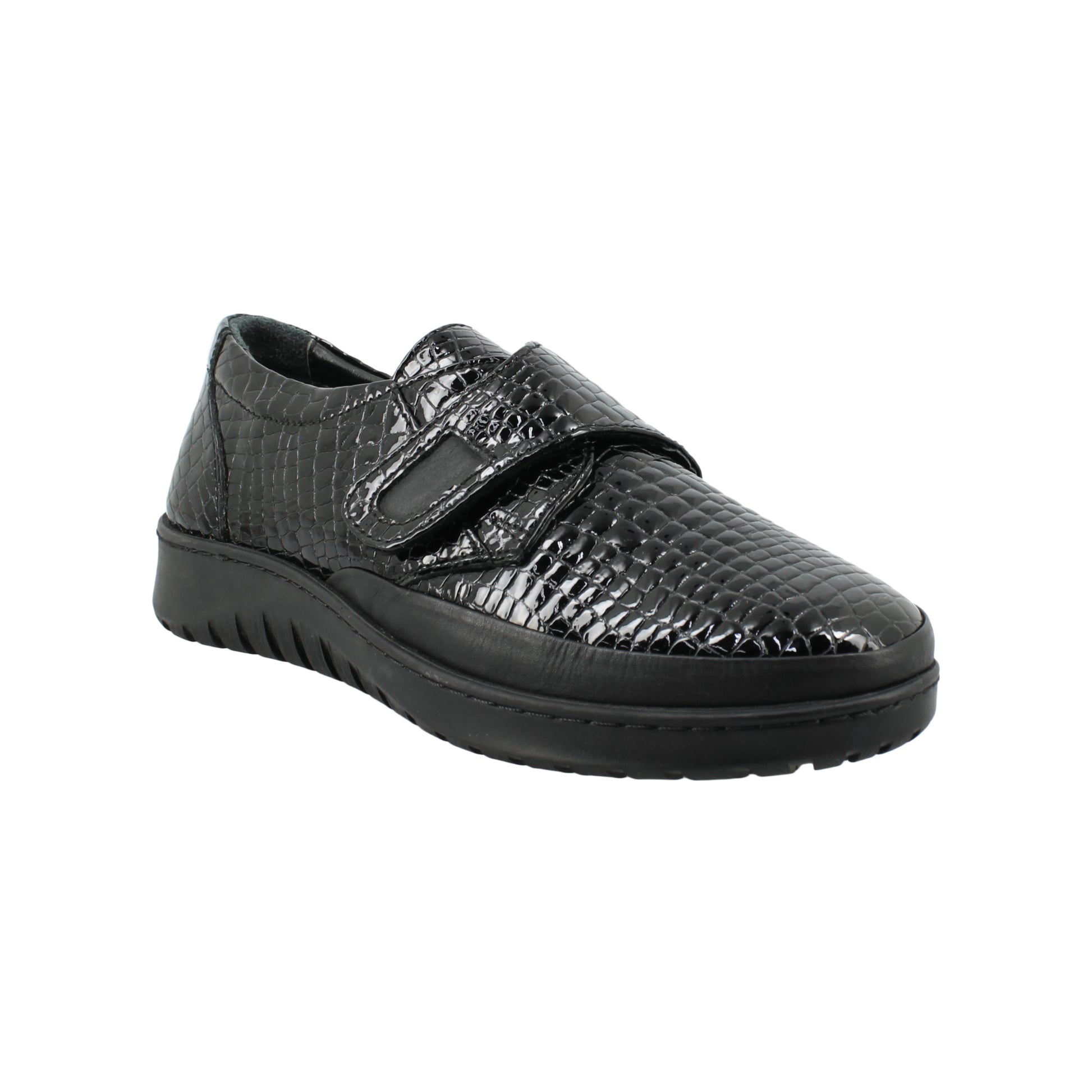 56.W205-7504 Μαύρο Δερμάτινο Γυναικέιο Sneaker Με Animal Print