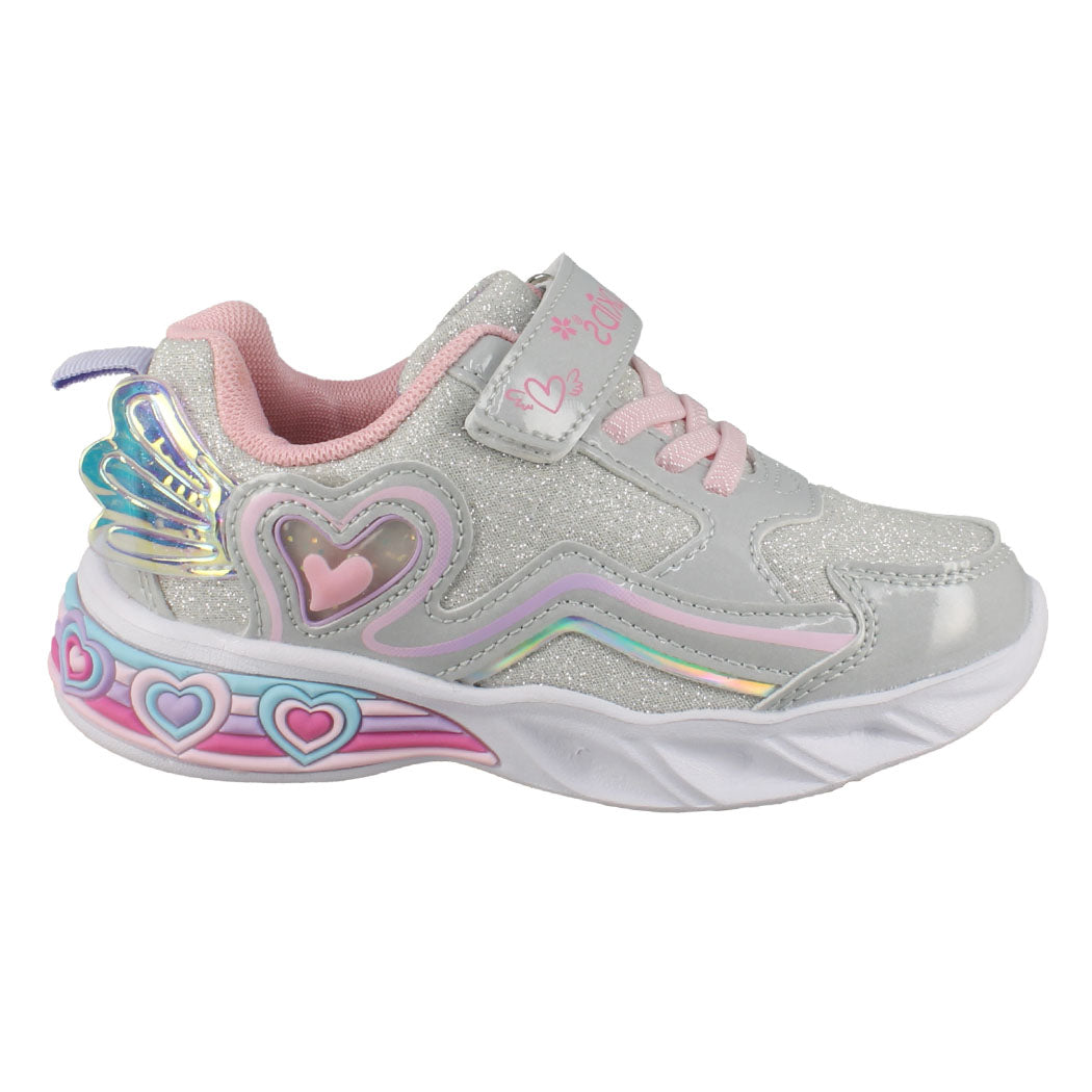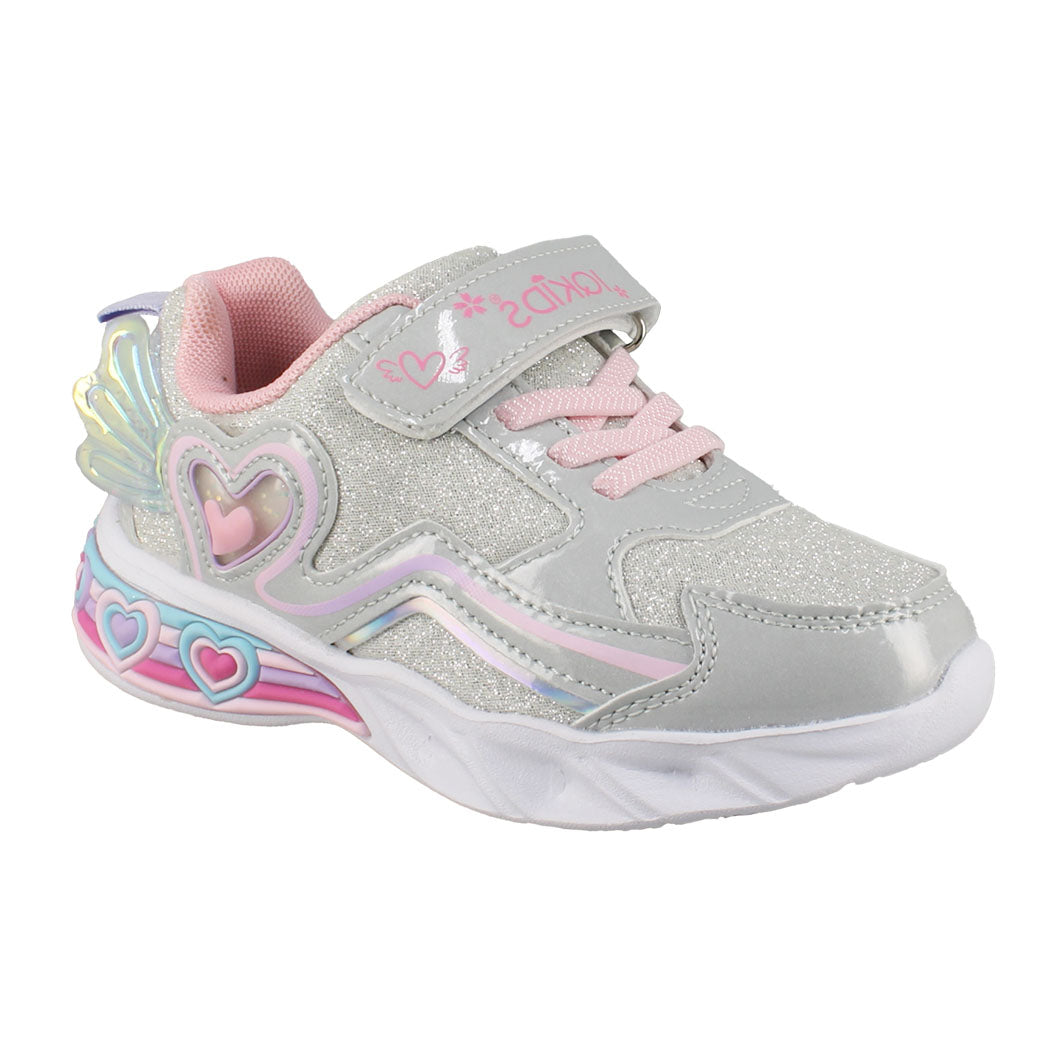 IQKIDS 92.ANGELICA-195 Ασημί Αθλητικό Με Φωτάκια Και Δερμάτινο Πάτο Για Κορίτσια