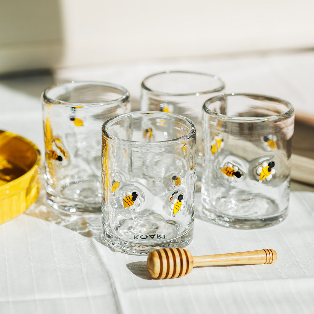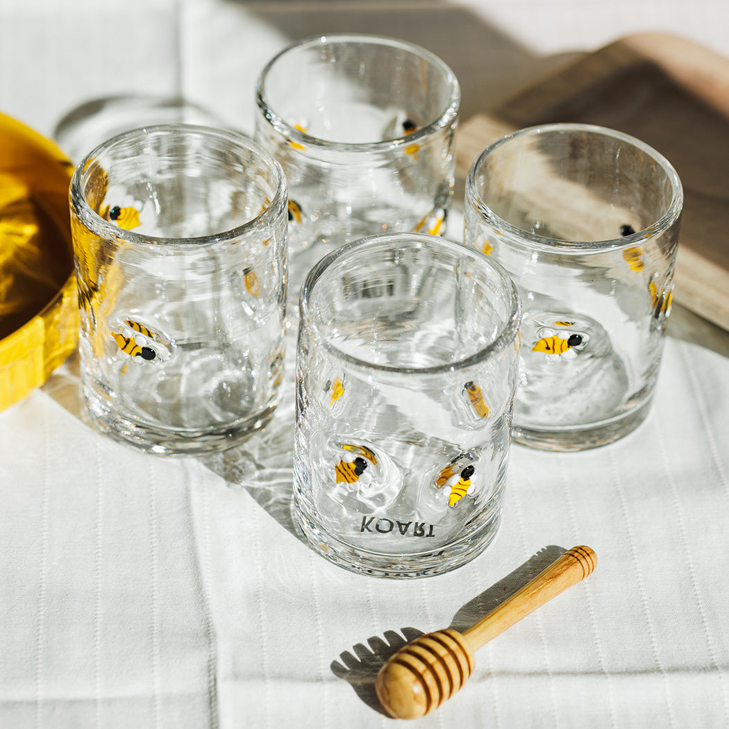 KOART| Bibi Σετ 4 Γυάλινα Ποτήρια με Σχέδιο Μέλισσα 420ml