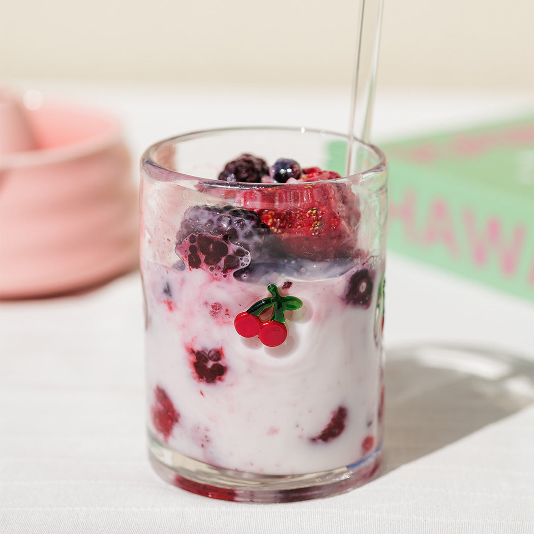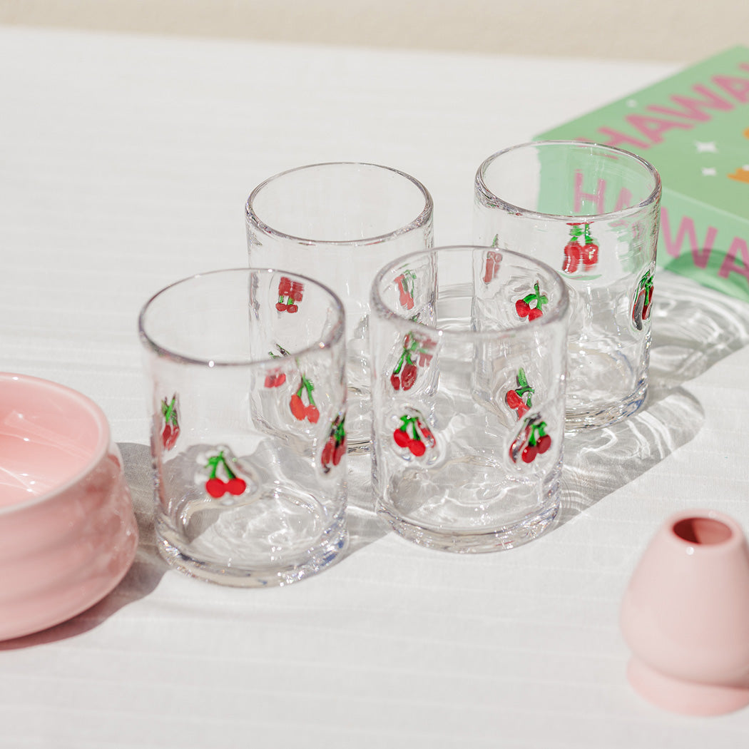 KOART| Cheri Σετ 4 Γυάλινα Ποτήρια με Σχέδιο Κεράσι 420ml