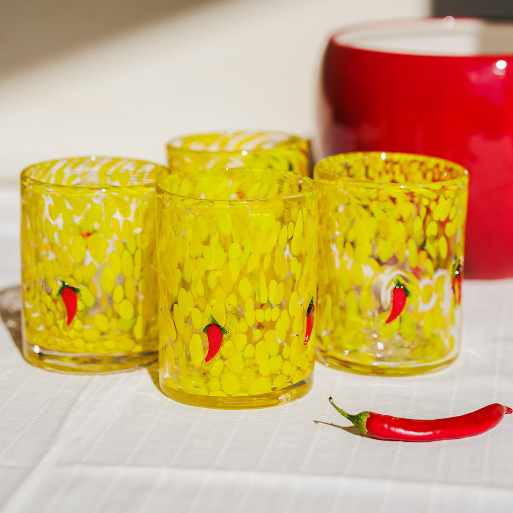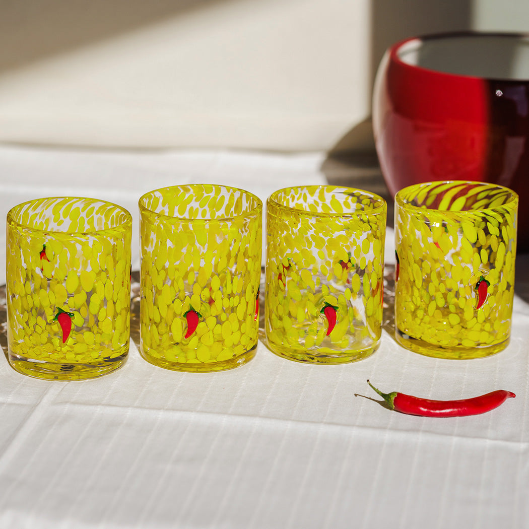KOART| Flama Σετ 4 Γυάλινα Ποτήρια με Σχέδιο Πιπεριά 420ml