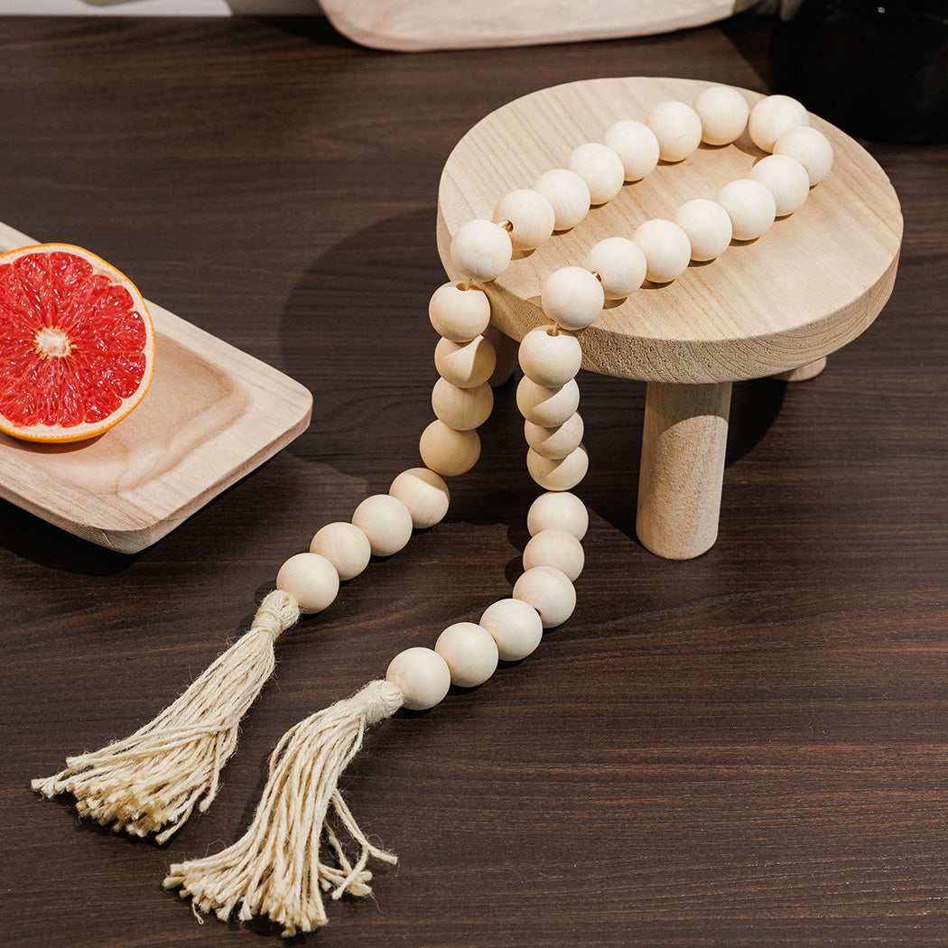 KOART| Kleo Διακοσμητικό αντικείμενο με ξύλινη χάντρα τύπου κομπολόι σε μπεζ χρώμα 121 εκ