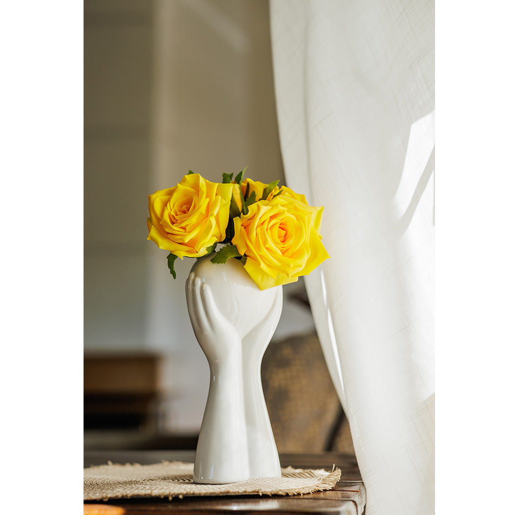 KOART| Rosetta Κίτρινο Τεχνητό μπουκέτο με τριαντάφυλλα Real Touch 21 εκ. 6 τμχ.