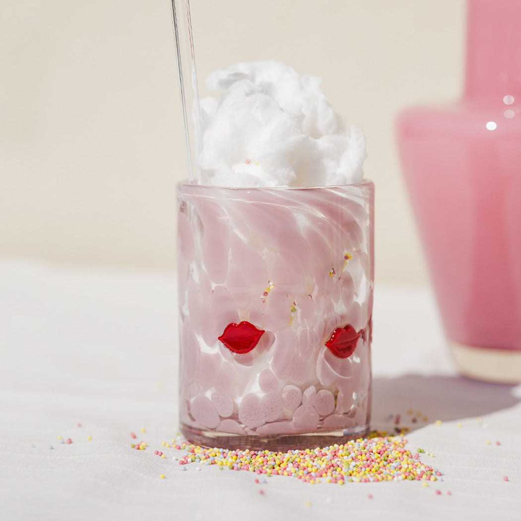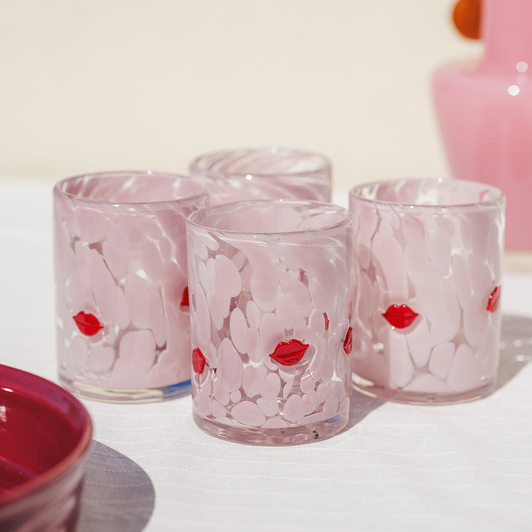 KOART| Smooch Σετ 4 Ροζ Γυάλινα Ποτήρια με Σχέδιο Χείλη 420ml